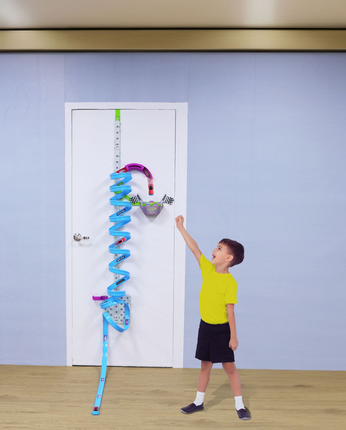 Pregateste-te pentru o cursa verticala spectaculoasa cu setul "Cyber Racers Vertical Launch Track Set"! Acest set inovator se agata de usa dormitorului tau si te provoaca sa lansezi masinile printr-un traseu cu bucle multiple, pana la atingerea liniei de sosire din stratosfera. Setul se monteaza pe usa dormitorului, economisind spatiu si oferind o experienta de joc unica. Traseul contine suficiente piese pentru a construi 10 bucle sau mai multe, creand un traseu vertical complex si provocator. Setul include 2 masinute pullback Cyber Racers, care se propulseaza singure dupa ce sunt trase inapoi, asigurand curse dinamice. Setul include conectori din plastic pentru asamblarea traseului si o agatatoare speciala pentru montarea pe usa. Traseul include o sectiune de intoarcere cu un obiectiv, care marcheaza linia de sosire si adauga un element de provocare. Traseul asamblat atinge o inaltime de aproximativ 2 metri, oferind o experienta de joc impresionanta. Setul este prezentat intr-o cutie cu fereastra, permitand vizualizarea continutului si oferind o optiune excelenta pentru cadou. Setul "Cyber Racers Vertical Launch Track Set" este o alegere excelenta pentru cei care cauta o experienta de joc unica si inovatoare. Cu traseul sau vertical montat pe usa, buclele multiple si masinutele pullback, acest set promite ore de distractie si competitie amicala